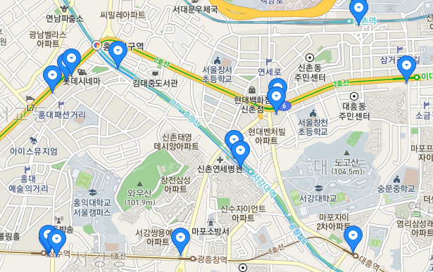 PC 환경에서는 내 위치를 제대로 잡지 못하지만, 모바일 환경에서는 정확하게 잡는 편이다.